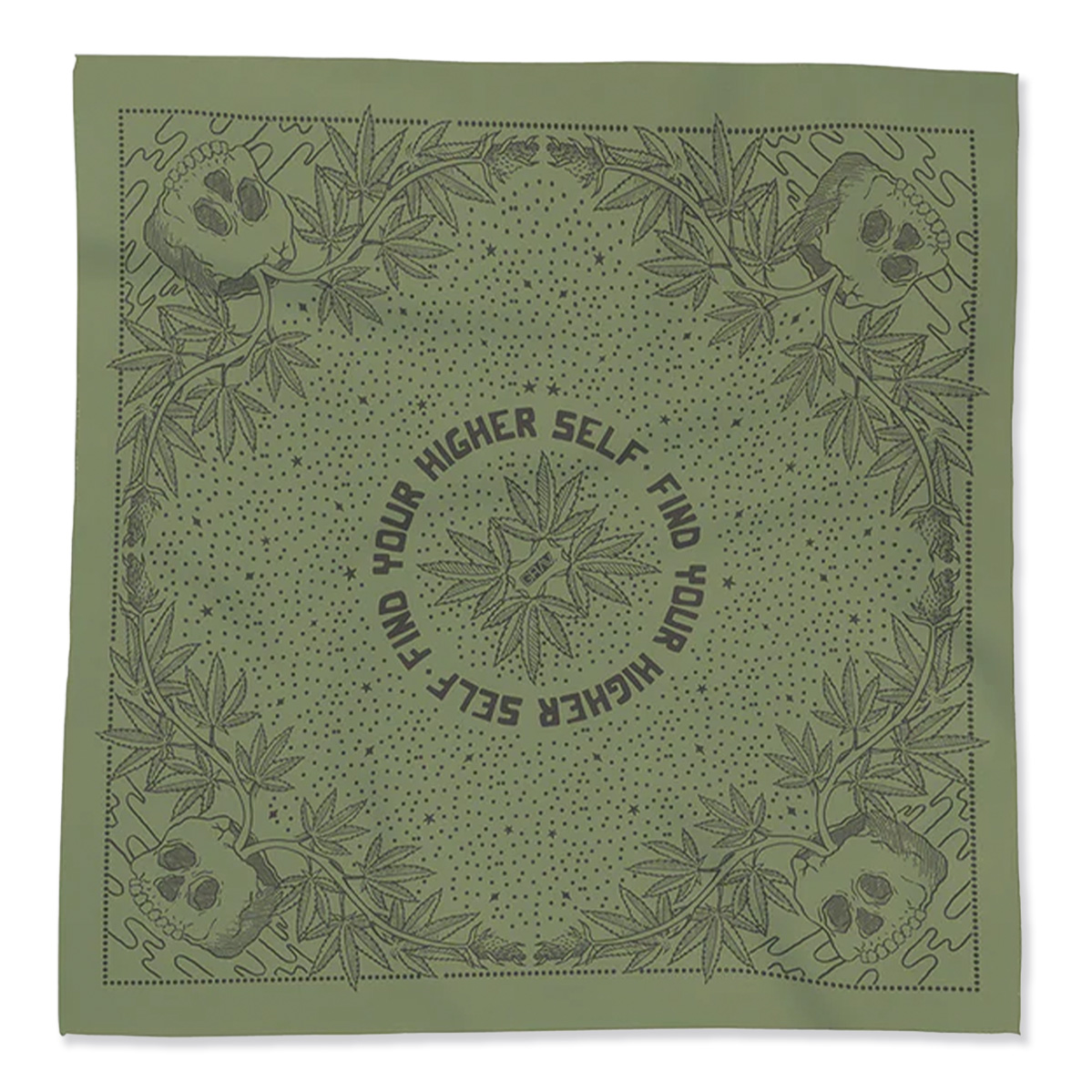 Esta suave bandana hecha de 100 % algodón presenta nuestro Bubbler de bolsillo esférico y el motivo "Find Your Higher Self".