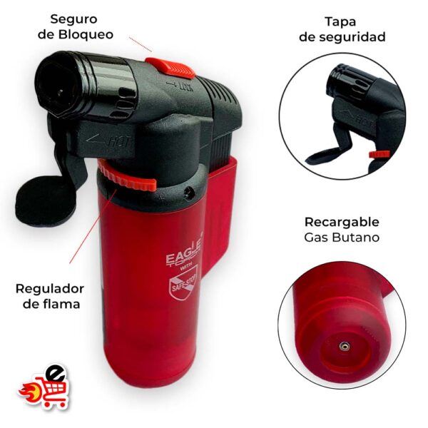 Encendedor Eagle Torch de Antorcha o tipo Soplete Recargable con Gas Butano con Regulador de Doble Flama, Seguro y Tapa de Seguridad Resistente al Viento y Seguro de Bloqueo