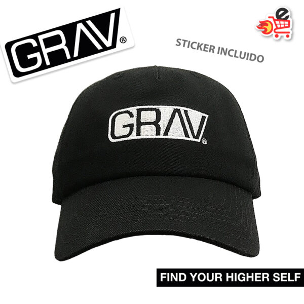 Esta gorra de 6 gajos presenta bordado directo del logotipo de GRAV y un frente de gabardina 100% algodón color negro, un básico nunca había sido tan cool